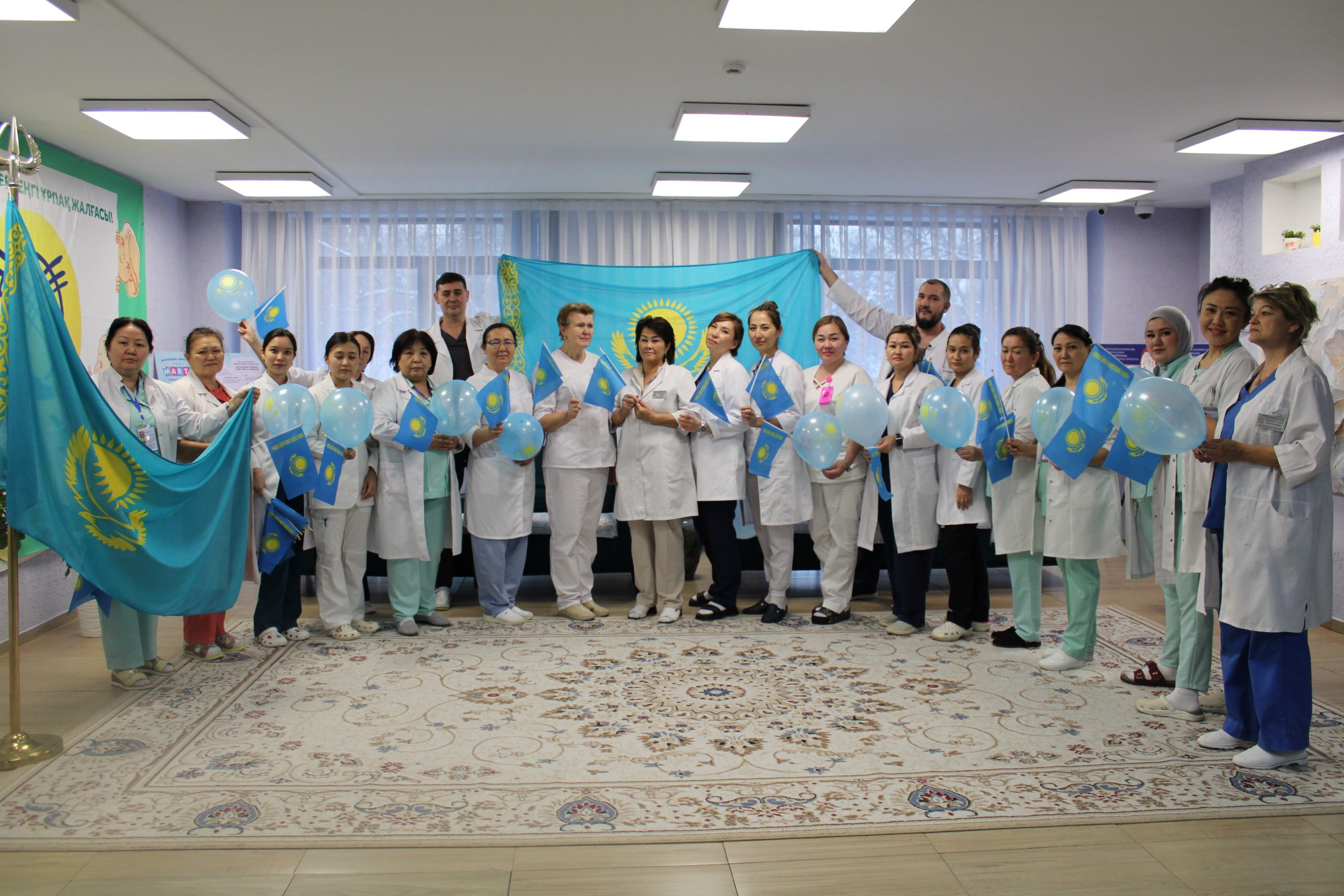 Қазақстан Республикасы Тәуелсіздігінің 34 жылдығына орай, перзентханаға аяқ басқан сәттен-ақ әр әйел мерекенің ерекше атмосферасын сезінеді. Мемлекеттік рәміздер қабылдау бөлімінен қарсы алып, акушерлер көгілдір түске сәнделген безендіру аясында келушілерді мақтанышпен қабылдап жатыр.
