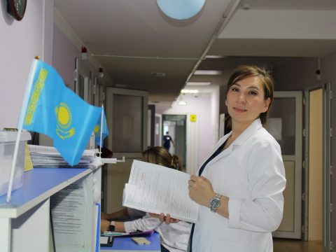 Босану бөлімі, балалар бөлімі, патология бөлімі және босанудан кейінгі бөлім – әр жұмыс орнында еліміздің мемлекеттік рәміздері ыждағатпен орналастырылған.